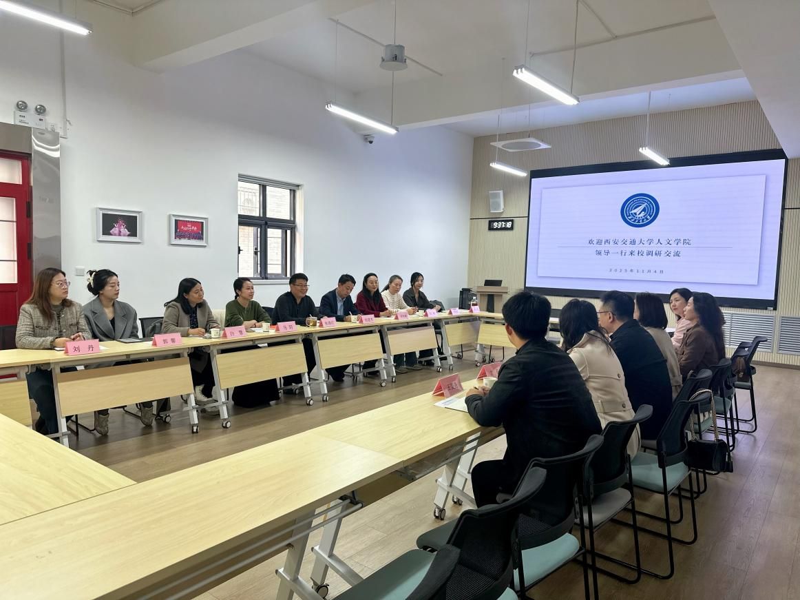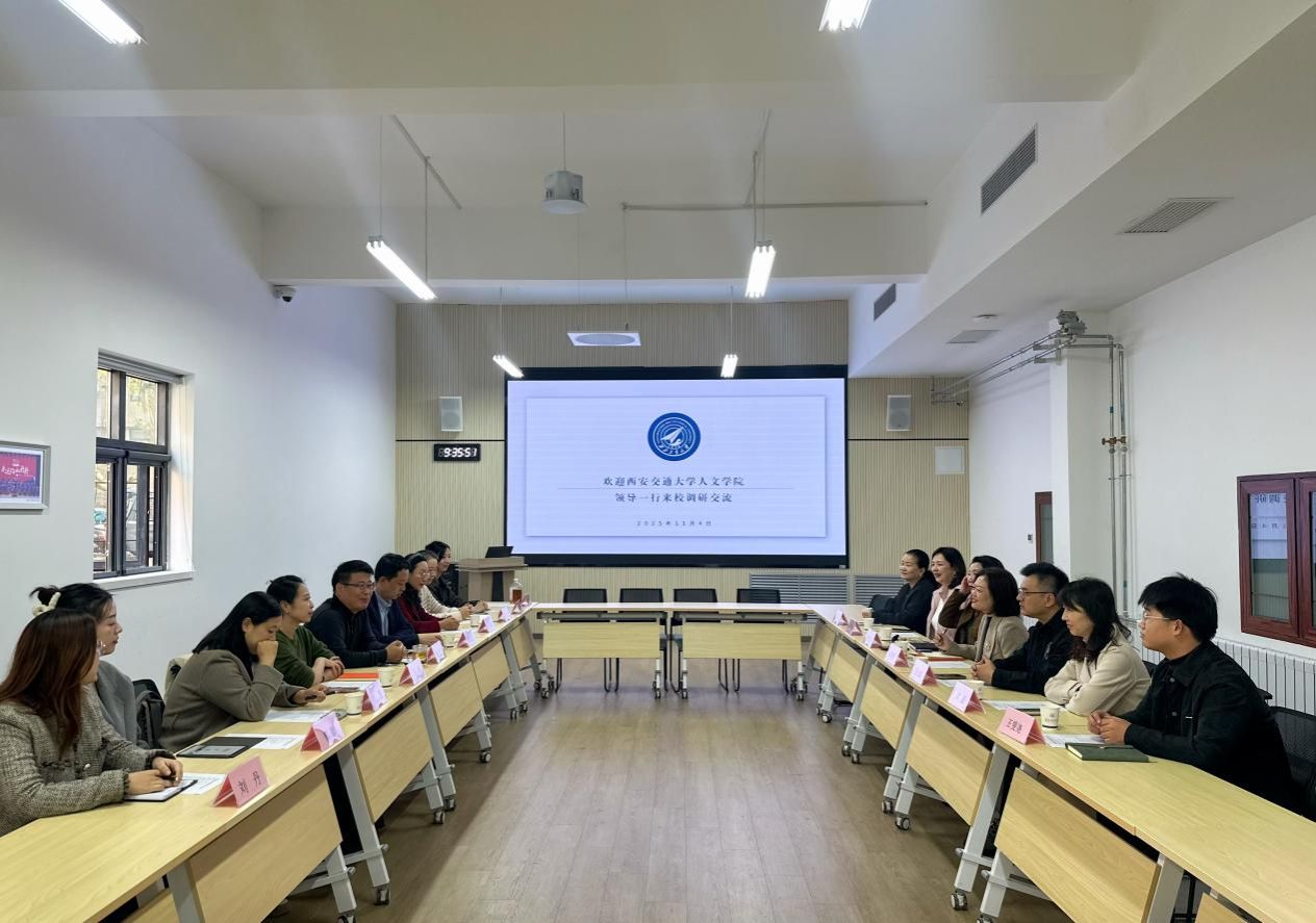 11月4日上午,西安交通大学人文学院党委书记纪梦然,人文学院音乐教育中心党支部书记曹耿献、主任方小笛一行来我校艺术教育中心开展调研座谈会。艺术教育中心主任张清江,副主任初建杰、马玥及教师代表等参加座谈。座谈由张清江主持。