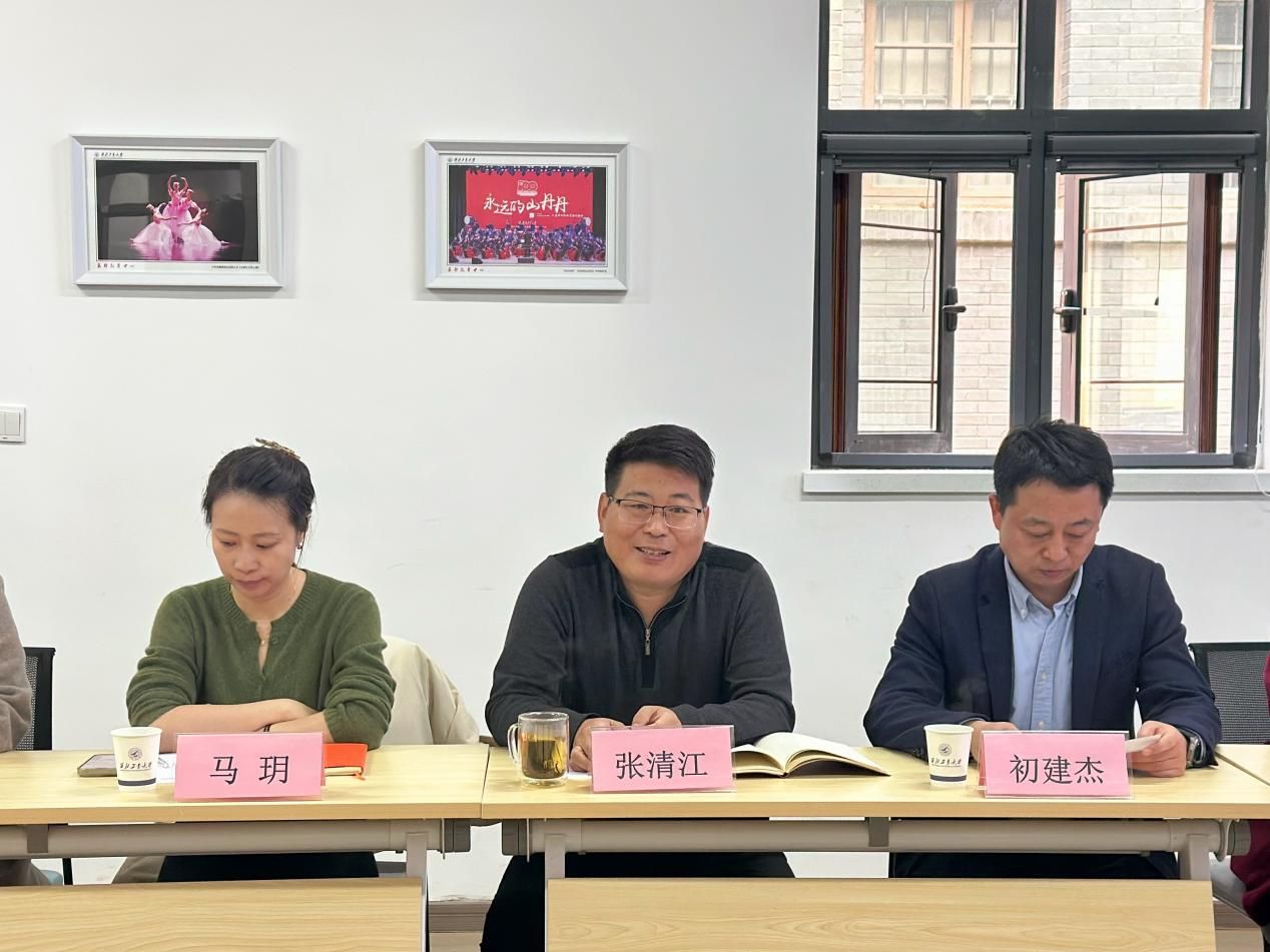 张清江代表艺术教育中心欢迎西安交通大学人文学院一行的来访,西安交通大学人文学院党委书记纪梦然介绍来访调研情况。