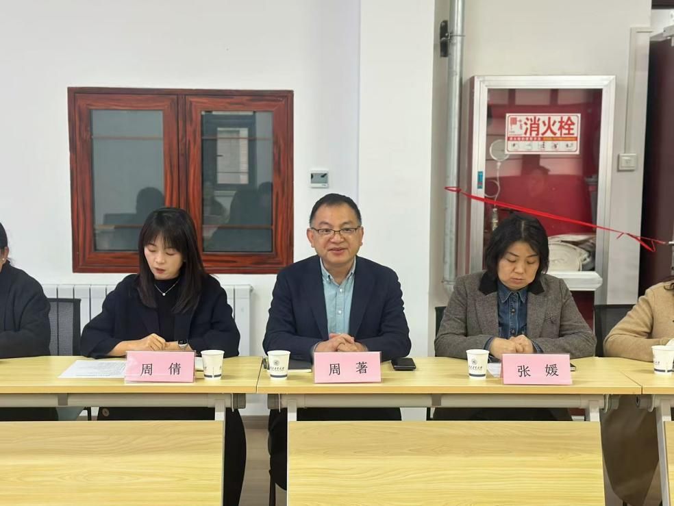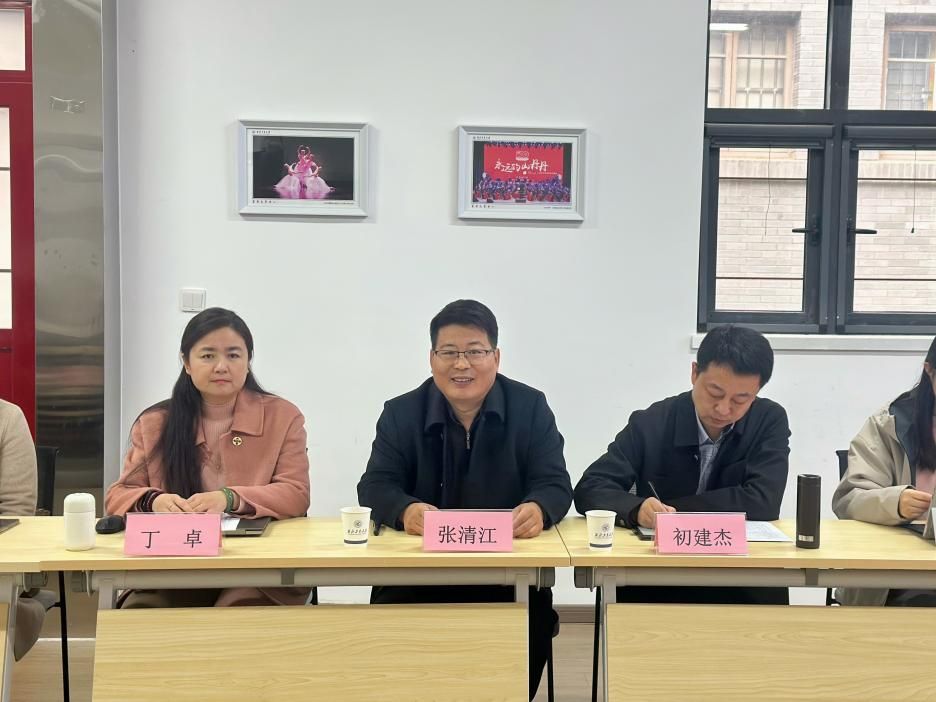 张清江代表艺术教育中心欢迎西安工业大学设计学院一行的来访,西安工业大学设计学院党委书记周著介绍来访调研情况。